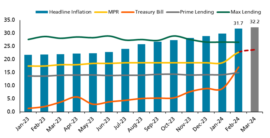 That said, the anticipated effect of the previous MPR hike on inflation is yet to materialise due to impact lag. For instance, CBN staff project headline inflation to remain on the uptrend to 32.6% y/y in March (Afrinvest projection: 32.2%) pressured by high energy prices, exchange rate passthrough effect, and food supply disruption due to the ongoing Ramadan and lingering insecurity.